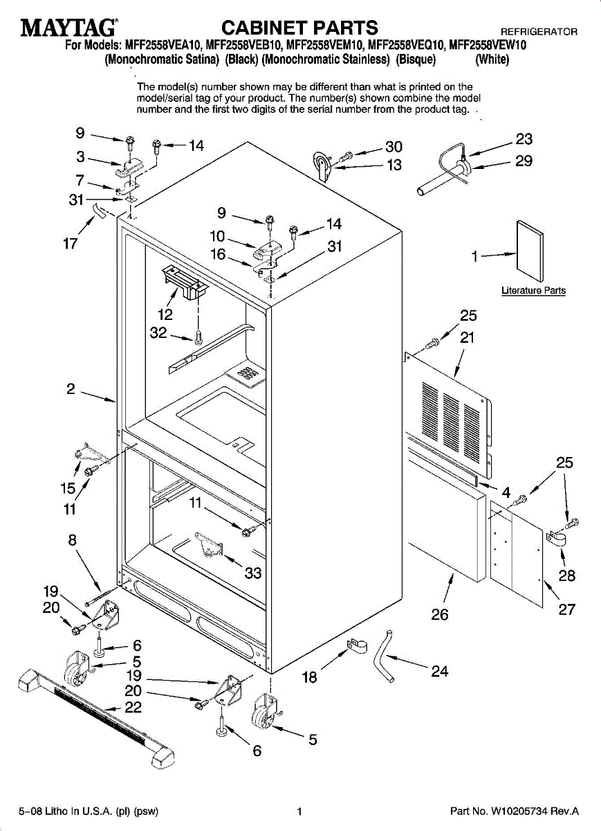 Secures panels, brackets, hinge covers, and internal components inside your refrigerator. Replace missing or stripped screws for rattle-free assembly.