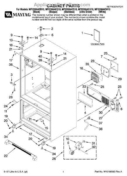 Parts for Maytag MFI2266AEU10: 01 - Cabinet Parts