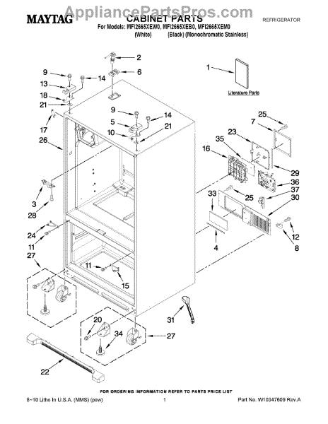 Parts for Maytag MFI2665XEW0: 01 - Cabinet Parts