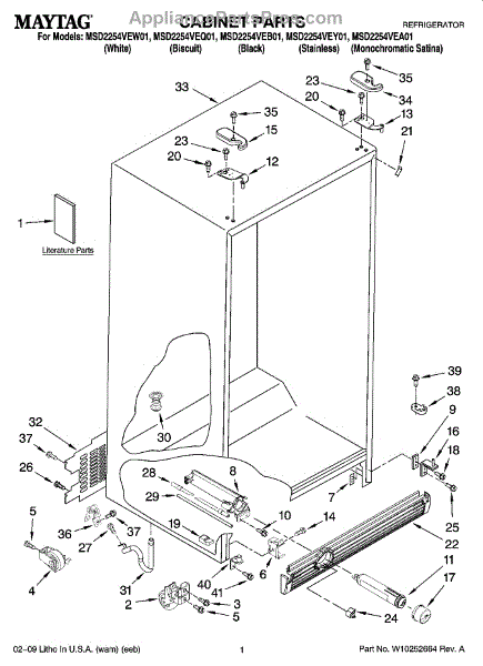 Parts for Maytag MSD2254VEY01: 01 - Cabinet Parts
