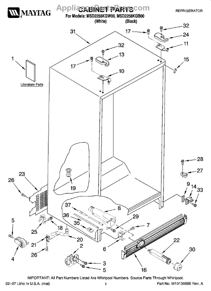 Factory screw secures panels, brackets, and internal components in refrigerators and freezers. Replace missing, rusted, or stripped screws for secure fit.