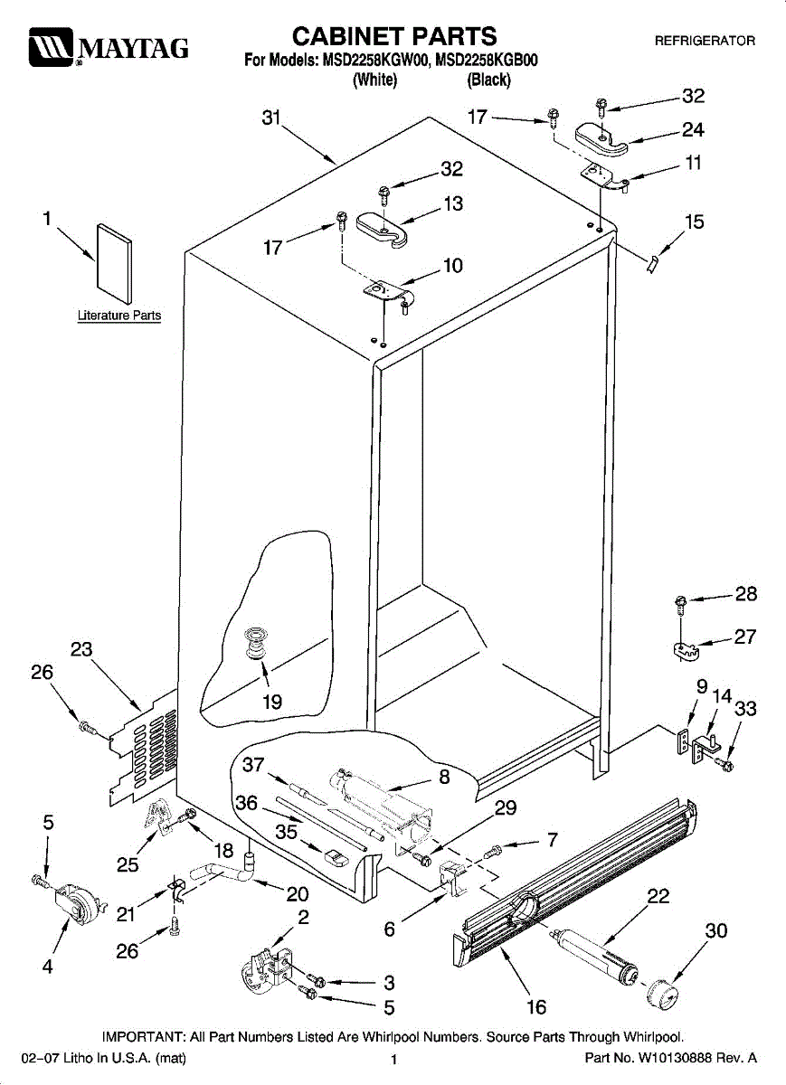 10-32 threaded screw secures panels, brackets, and components inside your refrigerator. Replace missing, stripped, or damaged screws to restore fit.