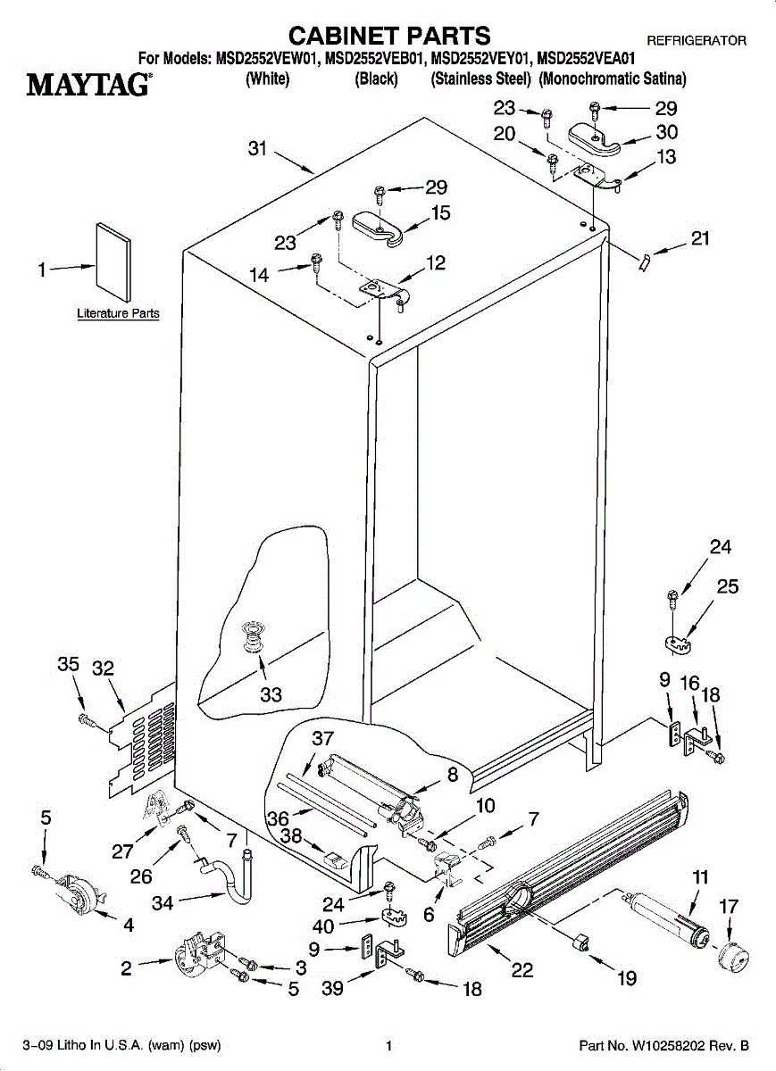 Parts for Maytag MSD2552VEY01: 01 - Cabinet Parts