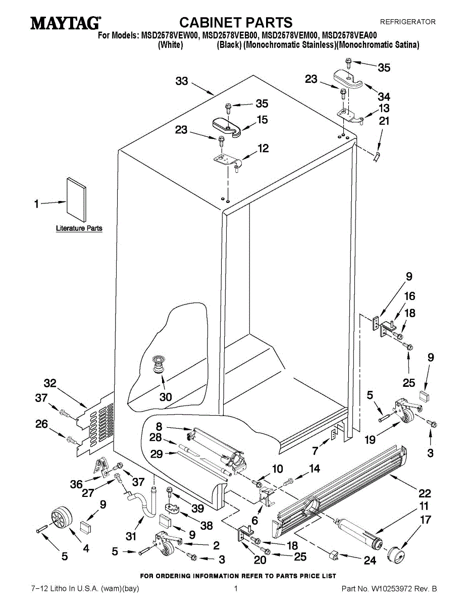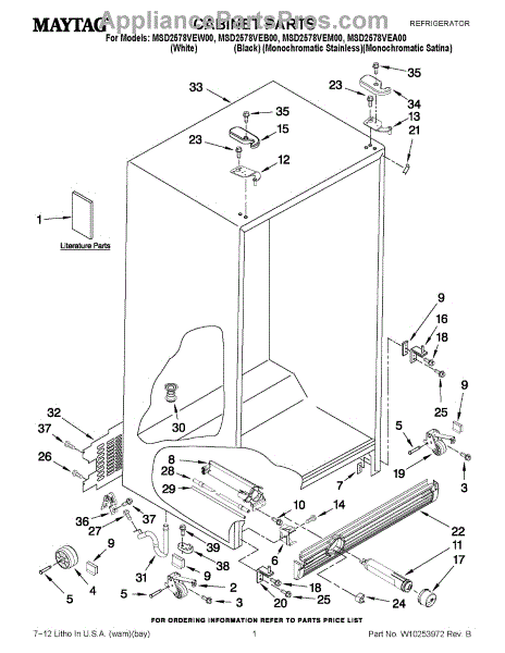 Parts for Maytag MSD2578VEB00: 01 - Cabinet Parts