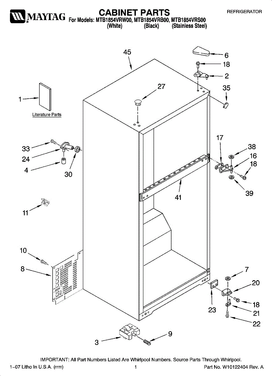 Repair manual for refrigerators and freezers made by Whirlpool. Covered brands include Whirlpool, Sears, Kenmore, Kitchen Aid, Roper, and Estate. Easy to follow photographs and step-by-step repair procedures.