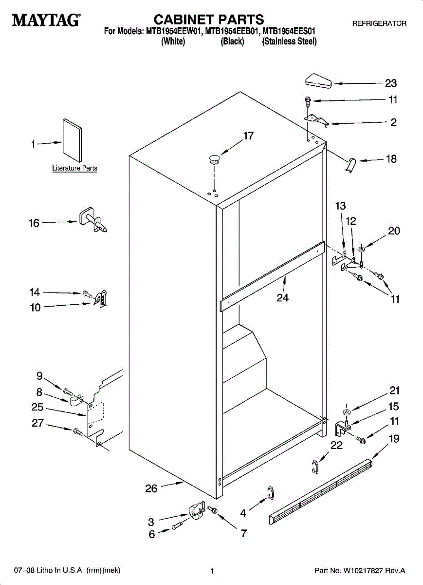 Parts for Maytag MTB1954EEB01: 01 - Cabinet Parts