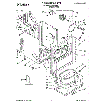Dryer outer cabinet that houses internal components. Replace if your cabinet is rusted, dented, cracked, or damaged, compromising structural integrity.