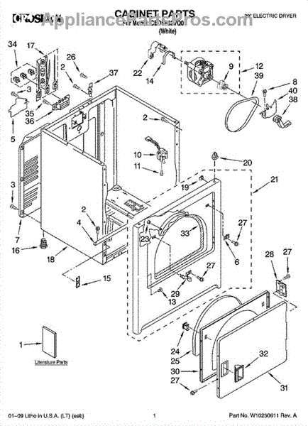 Note: If your original door seal was rubber, please note that the factory has changed this to a fiberglass seal. The factory also recommends adhesive part# WPY055980 to install.