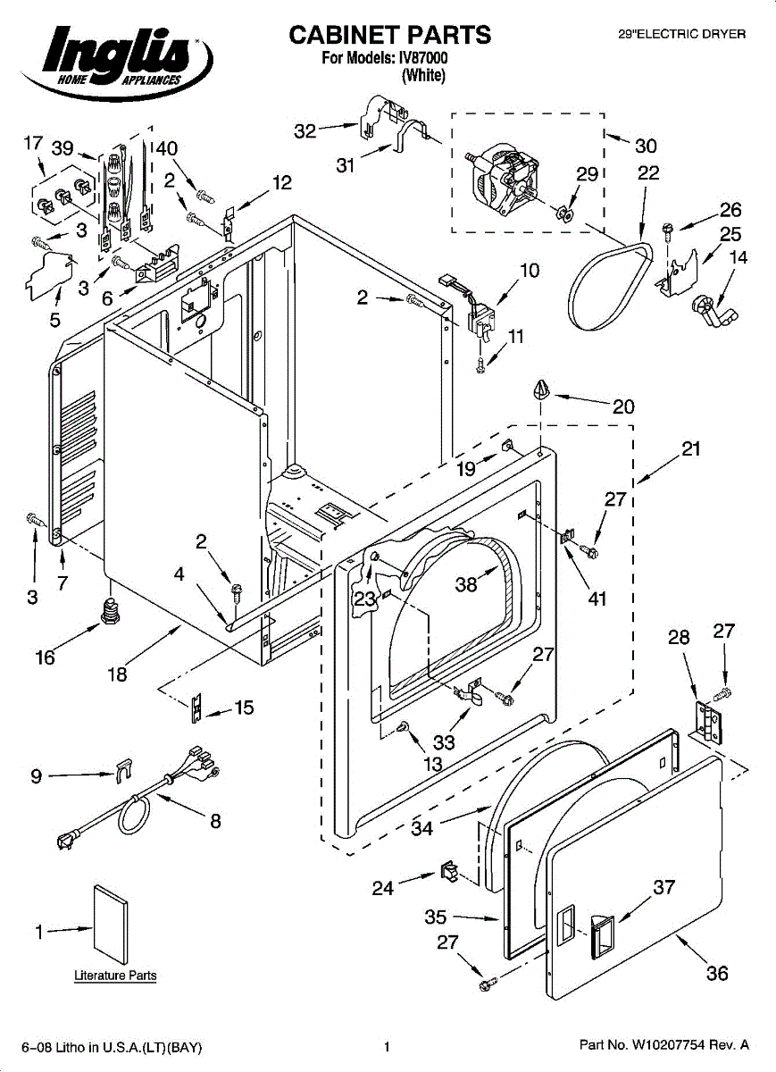 Parts for Whirlpool IV87000: 01 - Cabinet Parts