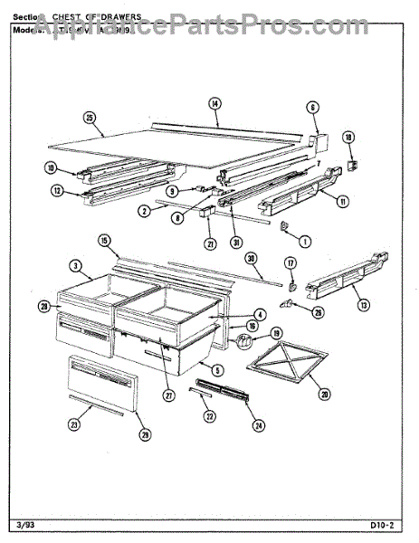 Parts for Admiral AT19M9V / DE53A: 01 - Chest Of Drawers Parts