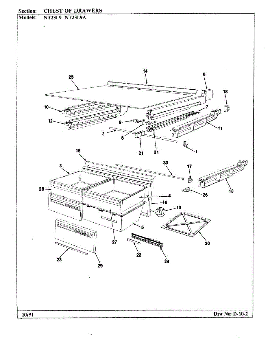 Parts for Admiral NT23L9A / AA99C: 01 - Chest Of Drawers Parts