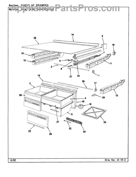 Parts for Hoover HRNT23192A / CF96A: 01 - Chest Of Drawers Parts