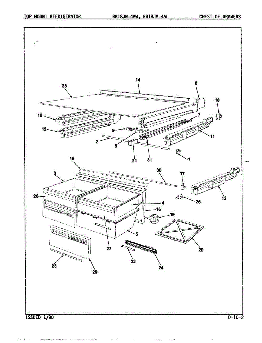 Parts for Magic Chef RB18JN-4AL / 9A31B: 01 - Chest Of Drawers Parts