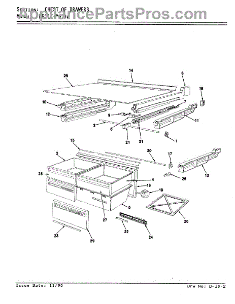 Parts for Magic Chef RB21KA-4A / AG71D: 01 - Chest Of Drawers Parts