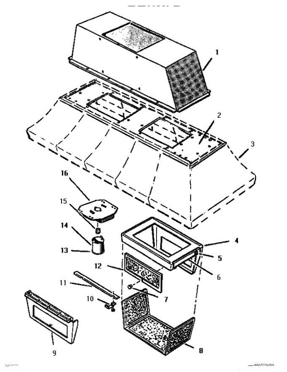 Housing assembly for range hood systems. Replaces damaged, cracked, or worn outer housing structure. Essential for restoring proper appearance and protection.