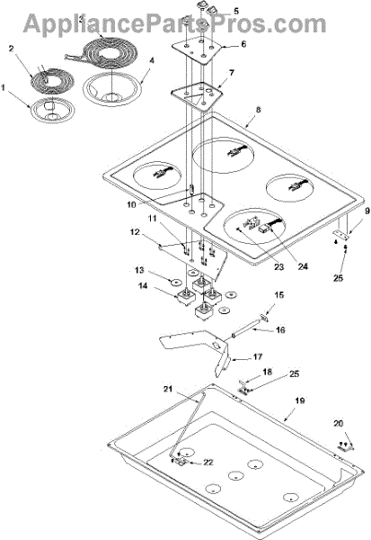 The Stove Top Drip Pan is an OEM replacement part for Whirlpool ranges. It is the shallow metal pan located below the stove burner elements that collect grease and food particles. The drip pan helps direct spills and drips away from the burner area to the bottom drawer for easy cleanup. Symptoms of a bad drip pan include:
