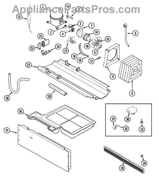• Spins the condenser fan blade to move air across condenser coils for proper heat dissipation