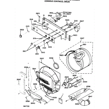 Parts for Ge WSM2400LBE: 01 - Console Controls, Drum Parts