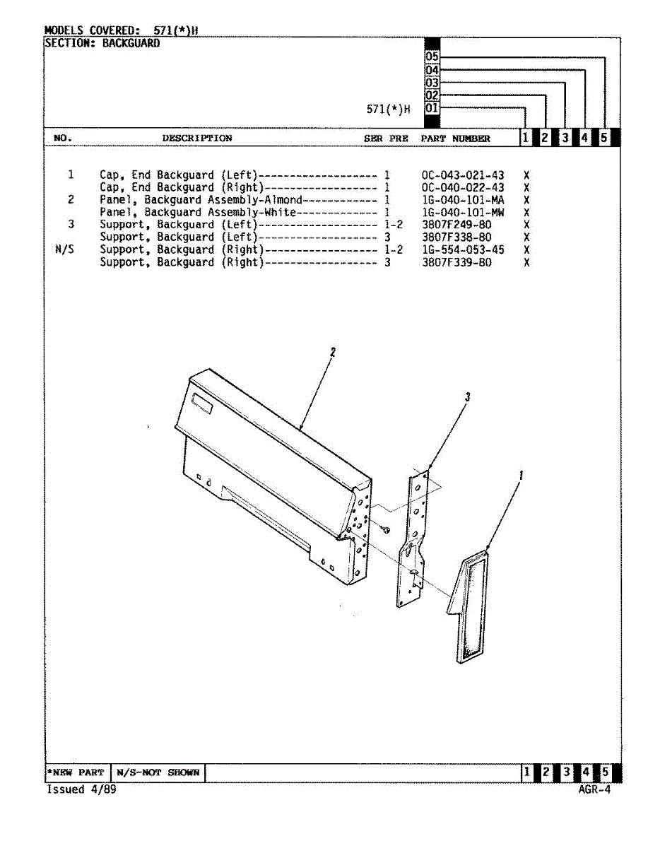 Parts for Admiral 571WH: 01 - Control Panel Parts