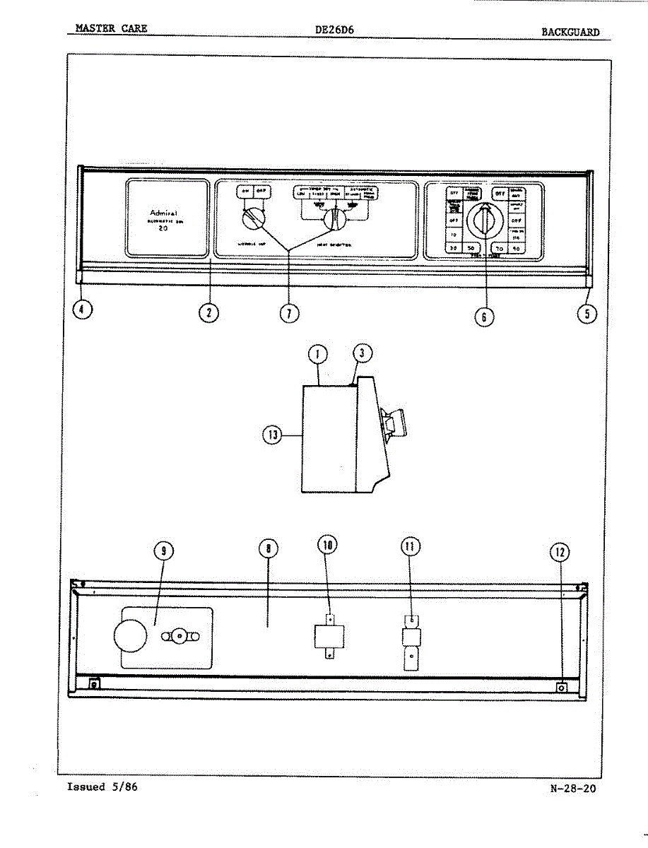 Parts for Admiral DE26D6: 01 - Control Panel Parts