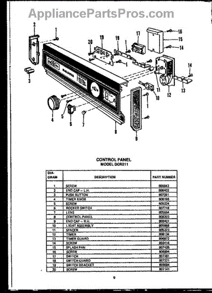 Parts for Amana DCR211: 01 - Control Panel Parts
