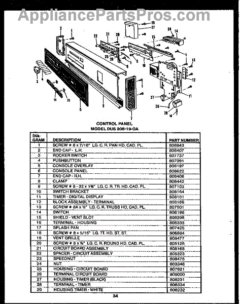 Parts for Amana DUS20819-OA: 01 - Control Panel Parts
