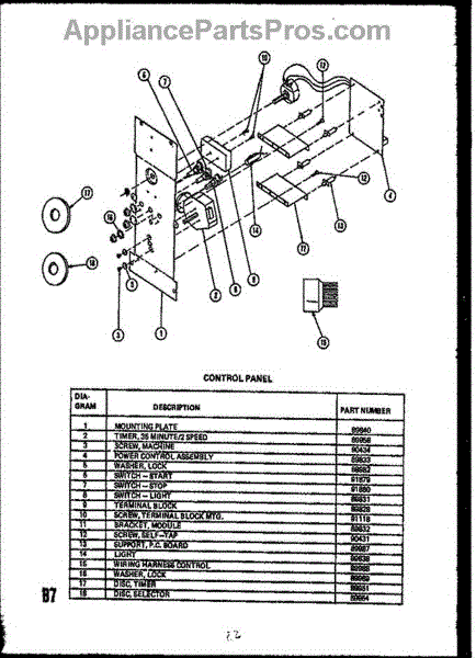 Parts for Amana EVP399: 01 - Control Panel Parts