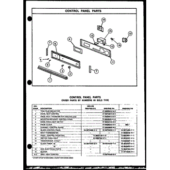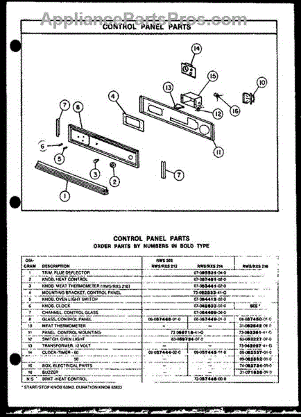 Parts for Amana RWS202: 01 - Control Panel Parts