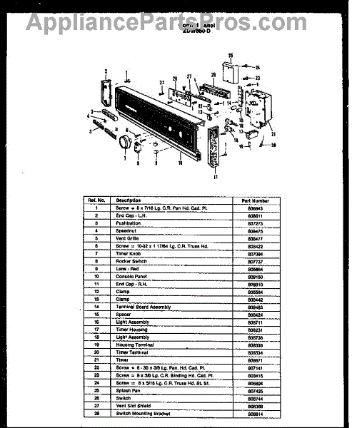 Parts for Amana ZDW-860-D: 01 - Control Panel Parts