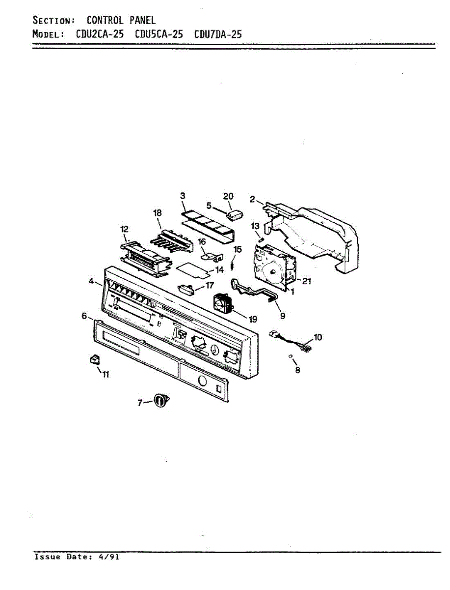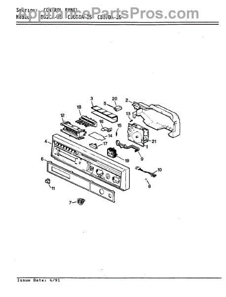 Parts for Crosley CDU2CA-25: 01 - Control Panel Parts