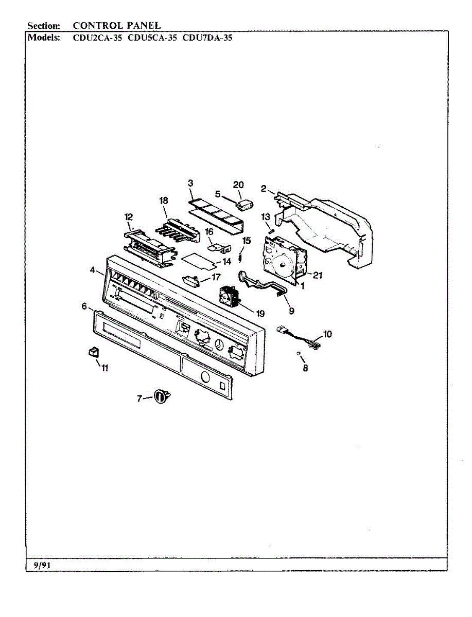 Parts for Crosley CDU5CA-35: 01 - Control Panel Parts