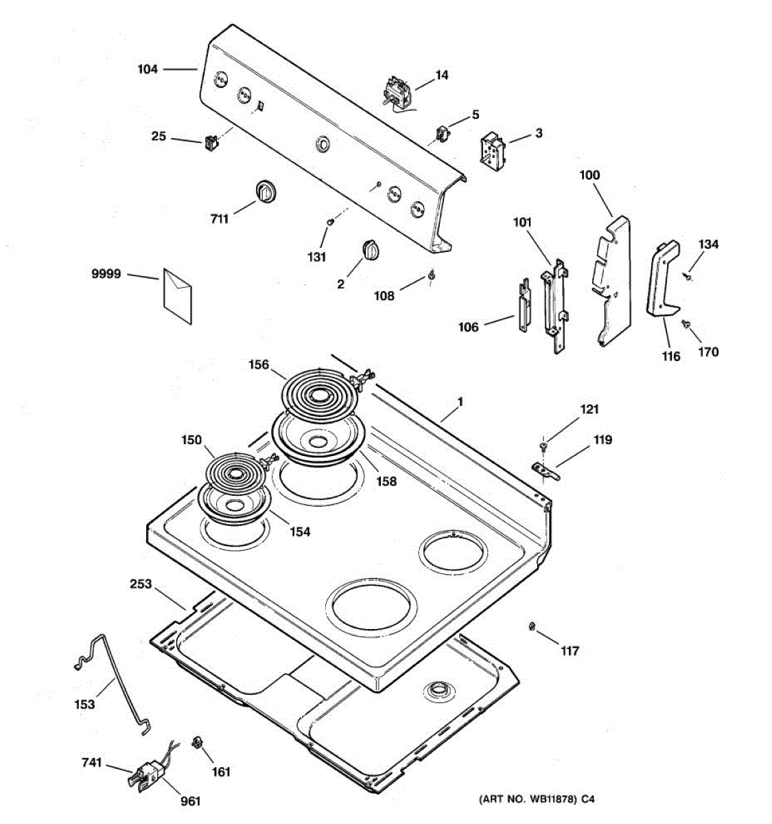 Metal main top cooktop surface for electric ranges. Replaces cracked, warped, rusted, or damaged tops. Restores flat cooking surface and appearance.