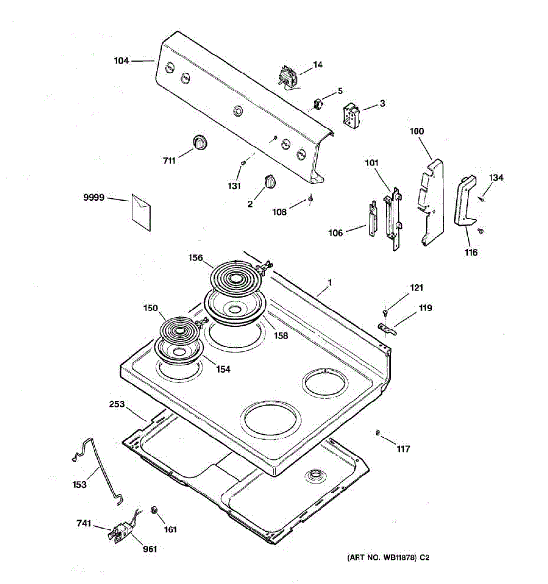 White metal cooktop panel for electric ranges. Replaces chipped, cracked, marred, or discolored main tops. Direct fit surface component for your range.