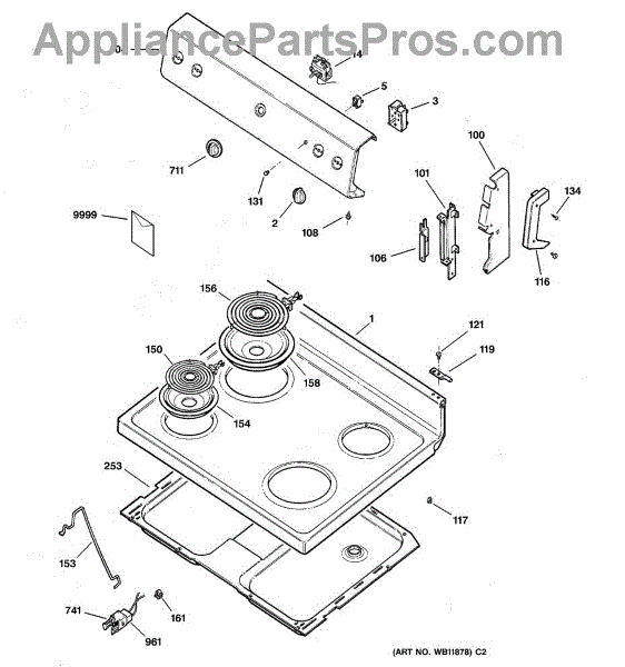 Parts for Ge RB525C2AD: 01 - Control Panel & Cooktop Parts