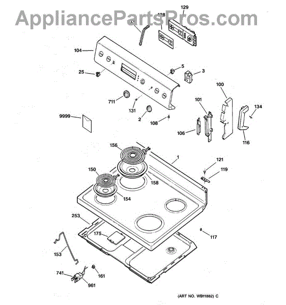 Parts for Ge RB753BC3CT: 01 - Control Panel & Cooktop Parts