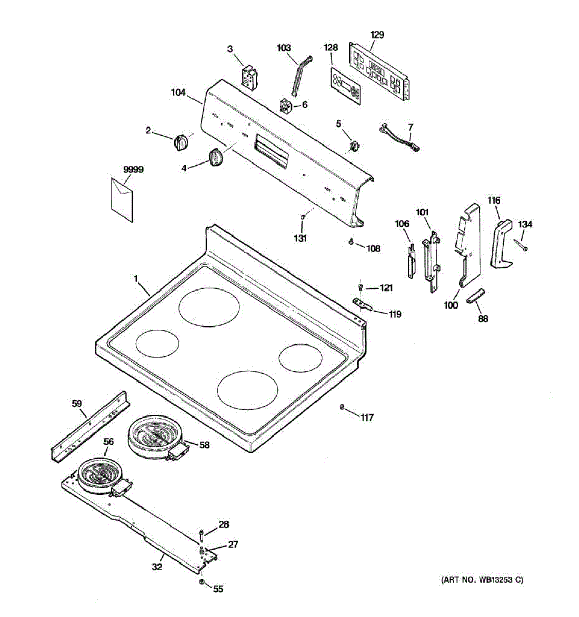 Burner not heating? This 8-inch haliant element often fails when ribbon elements burn out. Requires lifting cooktop to access and replace.
