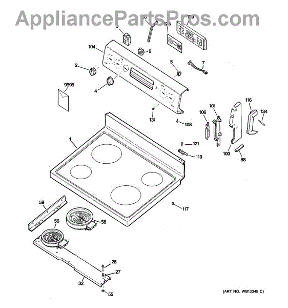 Complete glass cooktop assembly for electric ranges. Replaces cracked, broken, or damaged ceramic glass cooktops. Includes main top surface.