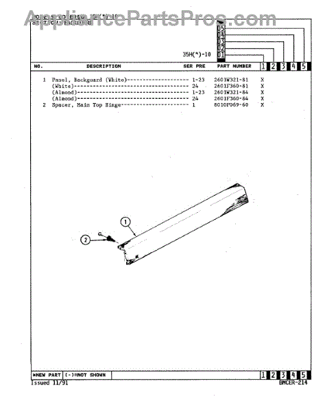 Parts for Magic Chef 35HN-10XS-ON: 01 - Control Panel Parts