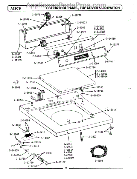 Parts for Maytag A23CSW: 01 - Control Panel, Top Cover & Lid Switch Parts