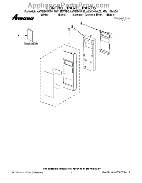 Parts for Maytag AMV1150VAD0: 01 - Control Panel Parts