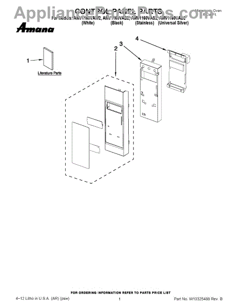 Parts for Maytag AMV1160VAD2: 01 - Control Panel Parts