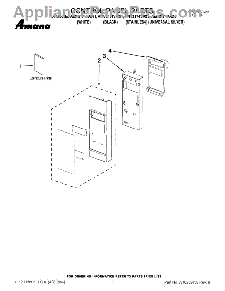 Parts for Maytag AMV2174VAB1: 01 - Control Panel Parts
