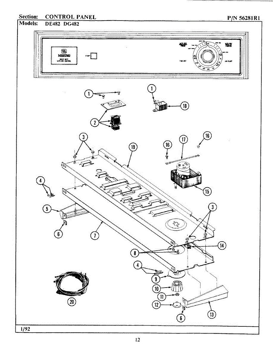 Parts for Maytag GDE482: 01 - Control Panel Parts