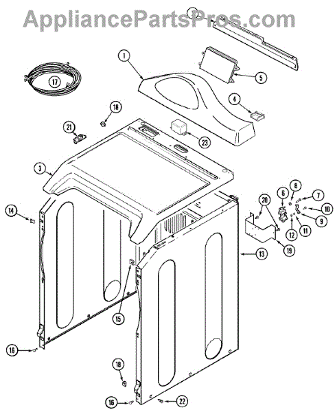 This replacement energy guide is a molded plastic trim piece that helps route or protect wiring and components in the appliance, keeping parts aligned and reducing wear. It restores proper fit and appearance where the original guide is damaged or missing. What it does: