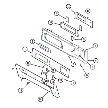 Lower display cover panel for dryer control area. Replaces cracked, broken, or missing lower display trim. Restores appearance of control panel.