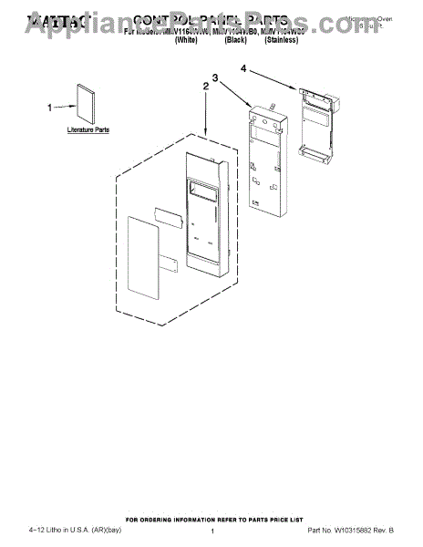Parts for Maytag MMV1164WW0: 01 - Control Panel Parts