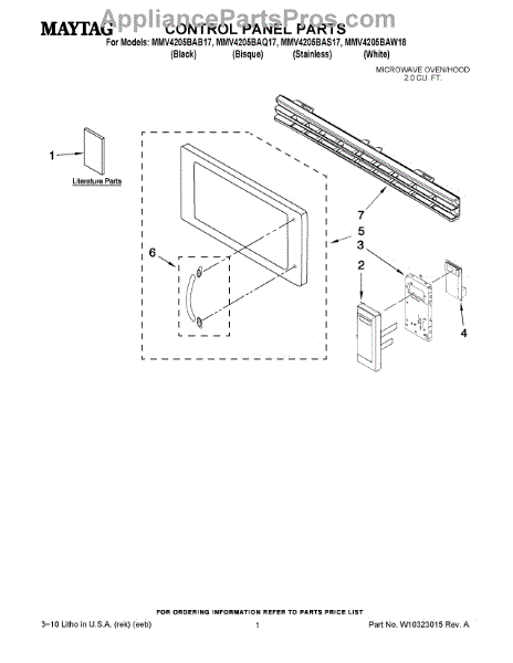 Parts for Maytag MMV4205BAS17: 01 - Control Panel Parts