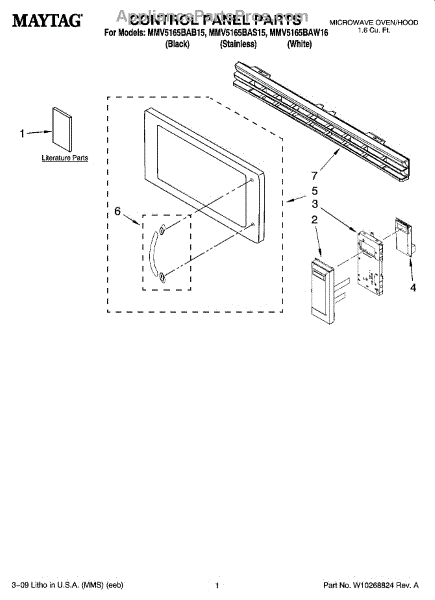 Parts for Maytag MMV5165BAW16: 01 - Control Panel Parts