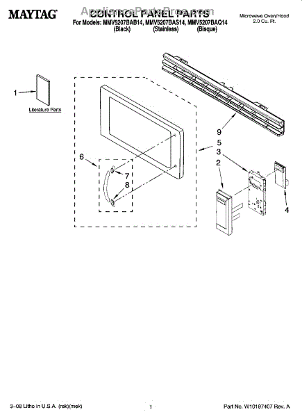 Parts for Maytag MMV5207BAS14: 01 - Control Panel Parts