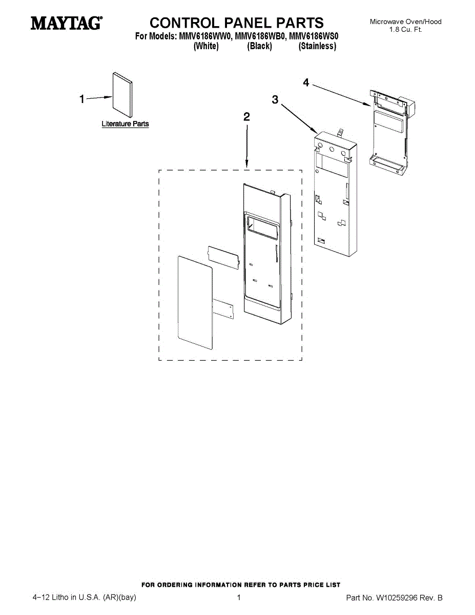 Parts for Maytag MMV6186WS0: 01 - Control Panel Parts